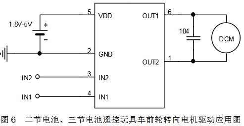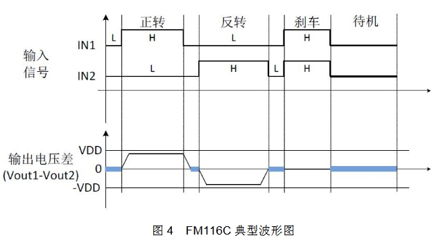 電路采用 H 橋結構, 內置功率 MOSFET 開關,可實現對負載直流電機正轉、反轉、剎車以及待機四個功能的控制,剎車功能能使負載電機快速停止轉動,待機功能使電路靜態功耗極低( 小于 1uA)。