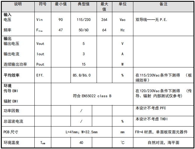 下表給出的是設(shè)計的最低可接受指標(biāo),實(shí)際性能在后續(xù)的測試結(jié)果部分給出。