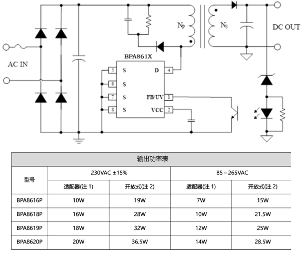 在輸出規格上,BPA861X 提供了 12V、1A(12W)的穩定輸出,負載調整率和線調整率均小于 1%,輸出電壓紋波 VPP 小于 100mV,這些參數指標確保了電源輸出的高質量和穩定性,能夠為家電設備的各個部件提供可靠的電力支持。同時,BPA861X 的封裝形式為 DIP-7,這種封裝具有良好的散熱性能和易于安裝的特點,能夠滿足大家電電源對散熱和空間布局的要求。