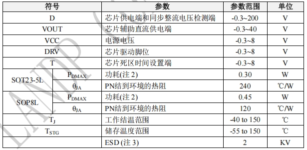 在電氣參數(shù)方面,LP35116-7 表現(xiàn)卓越。其 VCC 工作電壓范圍為 5.8V 至 6.4V,啟動(dòng)電壓為 4.3V 至 4.7V,欠壓保護(hù)閾值為 3.8V 至 4.2V。整流管的開通電壓閾值為 -0.25V 至 -0.15V,關(guān)斷閾值為 -8mV 至 -2mV。驅(qū)動(dòng)能力方面,其驅(qū)動(dòng)電壓最大值為 6V,驅(qū)動(dòng)腳出電流典型值為 1.5A,入電流典型值為 4A,上升時(shí)間為 25ns,下降時(shí)間為 10ns。這些參數(shù)確保了芯片在高效率和快速響應(yīng)之間的良好平衡。