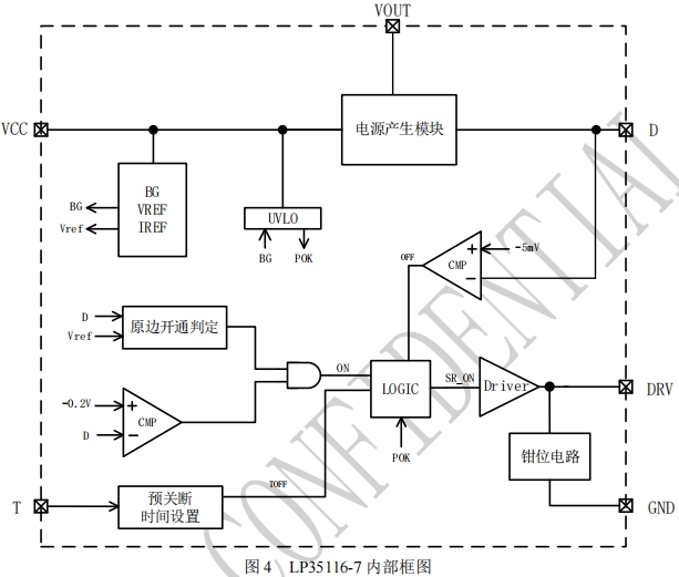 該芯片采用了多項(xiàng)專利技術(shù),包括整流管開通技術(shù)、周期追蹤技術(shù)和死區(qū)時(shí)間外置可編程技術(shù)。通過這些技術(shù),LP35116-7 能夠有效避免因激磁振蕩引起的誤動(dòng)作,減少關(guān)斷延遲,從而顯著提高電源轉(zhuǎn)換效率。此外,其多樣化的 VCC 供電技術(shù)確保了在多種輸出電壓條件下,芯片的穩(wěn)定供電,進(jìn)一步提升了系統(tǒng)的可靠性和適應(yīng)性。