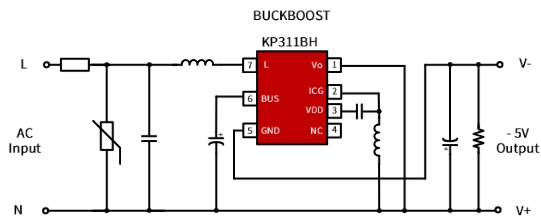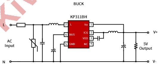 輸入電源:輸入電源通過變壓器的初級(jí)繞組連接到 KP311BHWG 的輸入端,為芯片提供工作電壓。