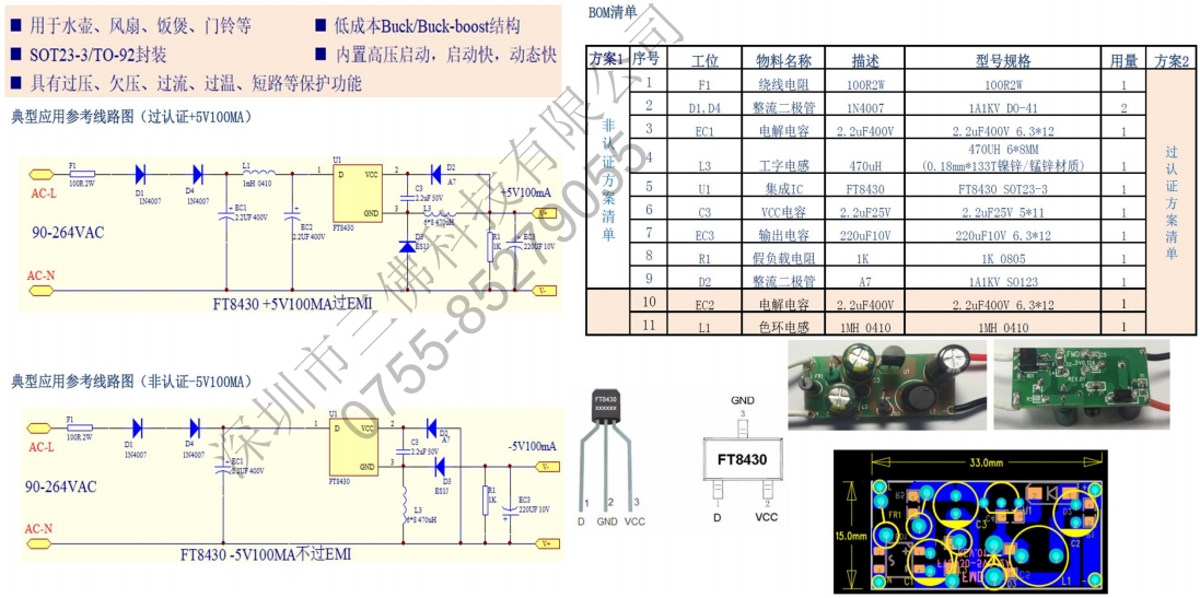 隨著半導(dǎo)體技術(shù)的不斷進(jìn)步,Buck/Buck-boost轉(zhuǎn)換器的芯片尺寸越來(lái)越小,同時(shí)其外圍電路也相對(duì)簡(jiǎn)單。這使得電源方案可以設(shè)計(jì)得非常緊湊,非常適合小家電產(chǎn)品的空間限制。例如,輝芒微電子的FT8430采用SOT23-3/TO-92封裝,尺寸小巧,能夠輕松集成到各種小型設(shè)備中。