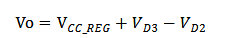 其中,VO是輸出電壓,VCC_REG是VCC恒壓反饋控制閾值(典型值5.38V),VD2是續(xù)流管壓降,VD3是VCC反饋(供電)二極管壓降。