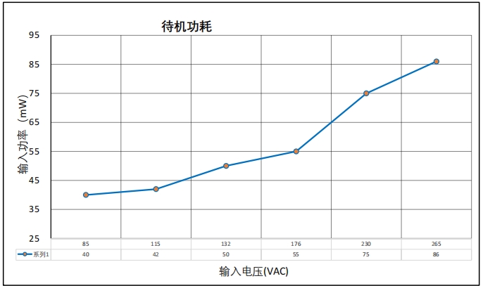 從圖中可以看出,BP86513D在不同輸入電壓下的待機功耗均低于100mW,符合節(jié)能標(biāo)準(zhǔn)。