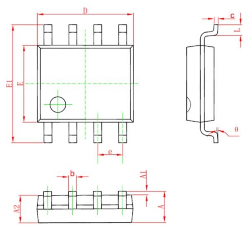 LP3568BG采用SOP8L封裝,其封裝尺寸如下: