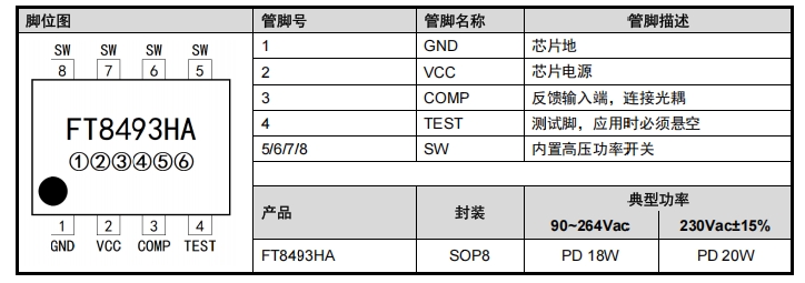 FT8493HA輝芒微SOP8封裝PD20W次邊反饋開關(guān)電源轉(zhuǎn)換器芯片