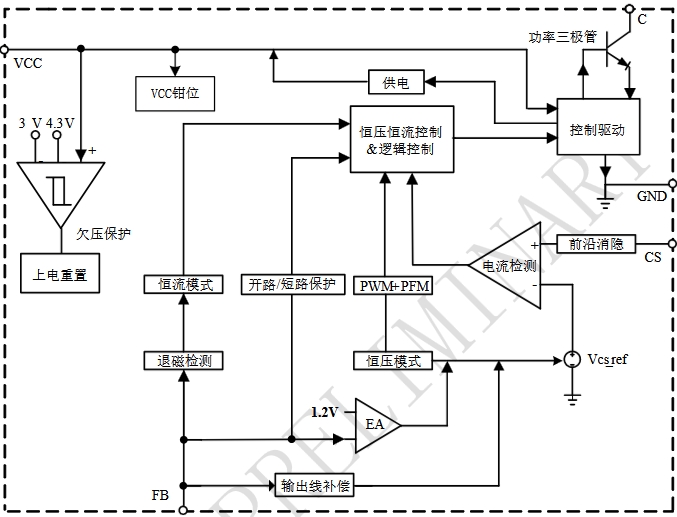 芯片通過檢測變壓器原邊的電流和電壓實現恒流和恒壓功能,能夠提供高精度的輸出控制。同時,其內置的輸出線損補償技術可以有效補償輸出電流在輸出線上的損耗壓降,進一步提高輸出精度。