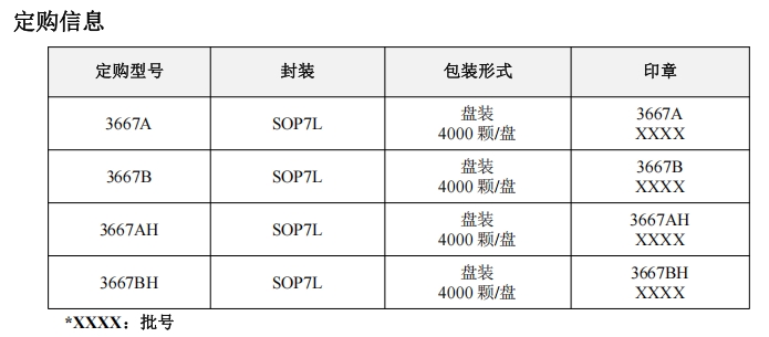 3667系列芯片包括3667AH、3667A和3667B/BH等型號,它們在一些關鍵參數和應用場景上存在差異,具體如下: