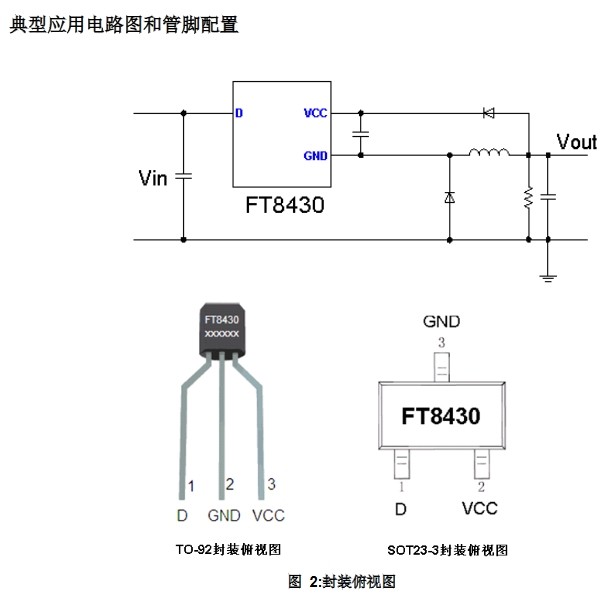 FT8430的典型應用電路非常簡單,以下是一個5V輸出的典型應用電路圖: