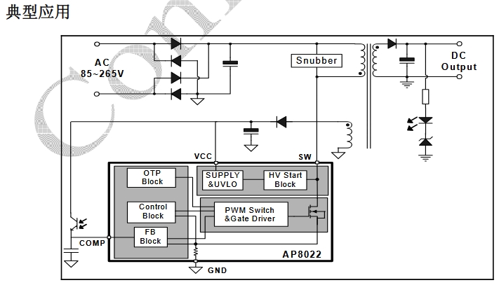 AP8022(Chipown)在 10 W 以內(nèi)的小功率離線反激方案里非常常見: