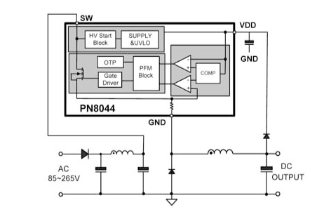 PN8044半封閉式穩態輸出功率5.4W @230VAC