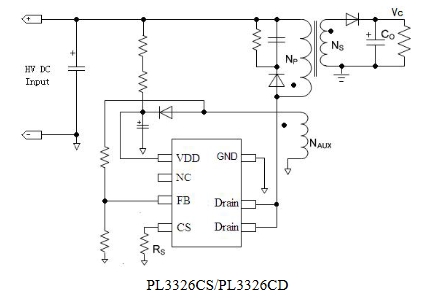 復合模式的應用使得芯片能夠實現低靜態功耗、低音頻噪音、高效率。而且高集成的功率 MOSFET 能夠降低外部 PCB的面積以及系統的成本。PL3326C 同時具有多種保護功能:逐周期峰值電流檢測、欠壓保護、過壓保護等。