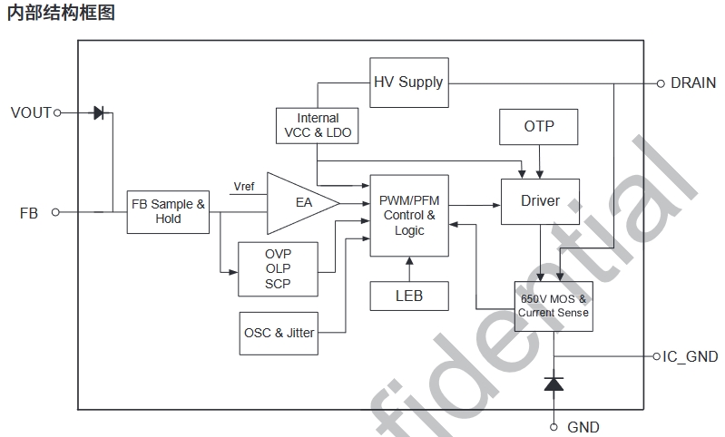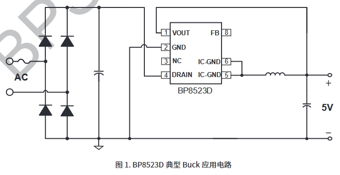 BP8523D 是一款高性能、高集成度、低待機功耗的開關電源驅動芯片,適用于全電壓 85~265VAC 輸入的 Buck、Buck-Boost 變換器拓撲應用。 BP8523D 內部集成了 650V 高壓 MOSFET、高壓啟動和自供電電路、電流采樣電路、電壓反饋電路以及續流二極管!采用先進的控制技術,無需外部 VCC 電容和環路補償即可實現優異的恒壓輸出特性,極大地減少外圍器件數量,節省系統成本和體積,同時提高可靠性。