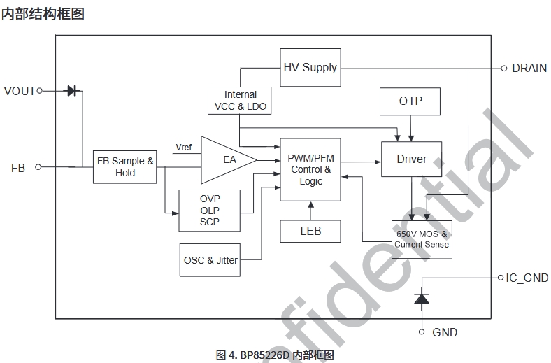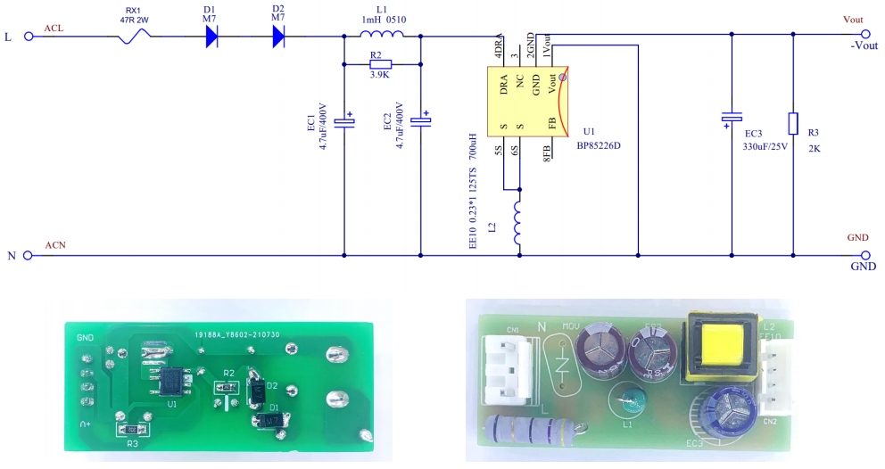 BP85226D是一款高性能、高集成度、低待機功耗的AC-DC開關電源芯片,適用于全電85~265VAC輸入的Buck、Buck-Boost變換器拓撲應用,SOP-7封裝,內部集成了650V高壓MOSFET,高壓啟動和自供電電路、電流采樣電路、電壓反饋電路以及續流二極管,采用先進的控制技術,無需外部VCC電容和環路補償,即可實現優異的恒壓輸出特性,適用于電飯煲,空氣炸鍋,智能門鈴/插座等小家電。