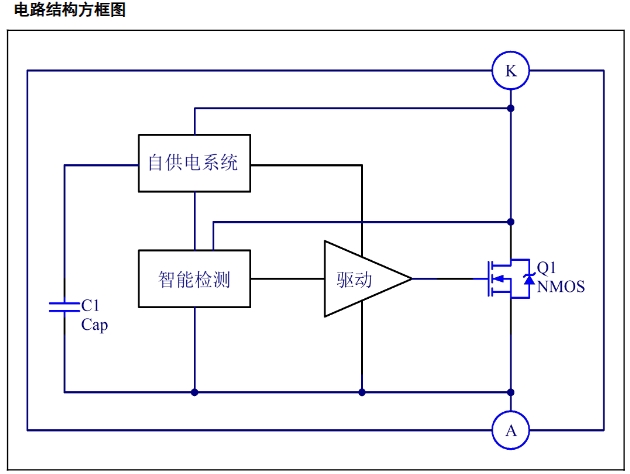 DK5V100R15VL是一款簡單高效率的同步整流芯片,只有A,K兩個(gè)功能引腳,分別對應(yīng)肖特基二極管的PN管腳。芯片內(nèi)部集成了100V功率NMOS管,可以大幅降低二極管導(dǎo)通損耗,提高整機(jī)效率,取代