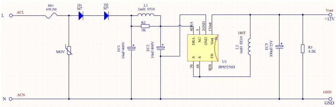 BP85256D提供了一種高效、可靠的非隔離電源解決方案,特別適合12V/300mA的應用。通過精心設計的電路,可以確保電源的穩(wěn)定性和效率,滿足各種電子設備的需求。無論是小家電還是智能家居設備,BP85256D都能提供所需的電源支持。