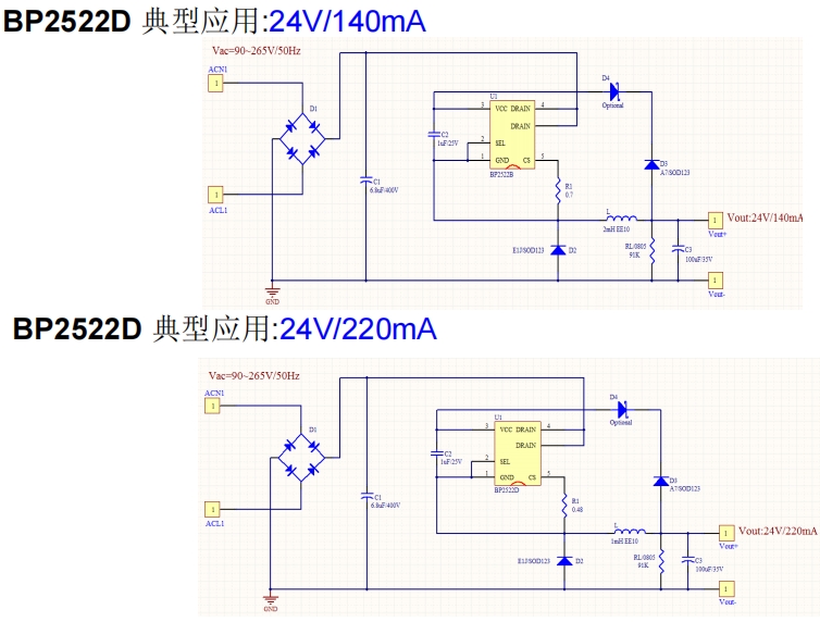 以BP2522D為例,其在24V輸出應(yīng)用中的典型電路設(shè)計(jì)如下:
