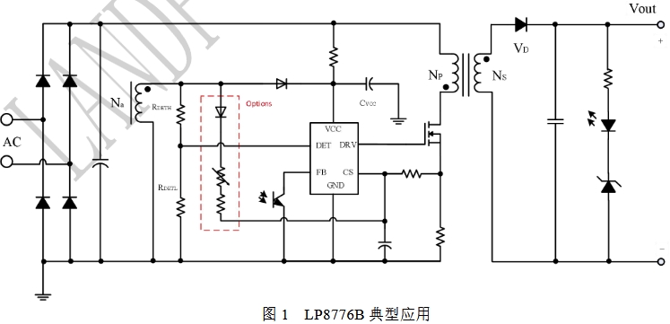 LP8776B是一款適合于副邊控制反激應用的隔離型恒壓PWM控制器,它采用特有的高低壓輸出電流補償方式,使得輸出過流電流不隨輸入電壓變化。LP8776B具有多模式恒壓控制方式,包括峰值電流控制模式、過載時升高頻率提高過載輸出電流的Peak Load功能,以及在輕載或空載時工作的打嗝模式。此外,LP8776B還采用了頻率抖動技術來改善EMI指標,并具有多重保護功能。