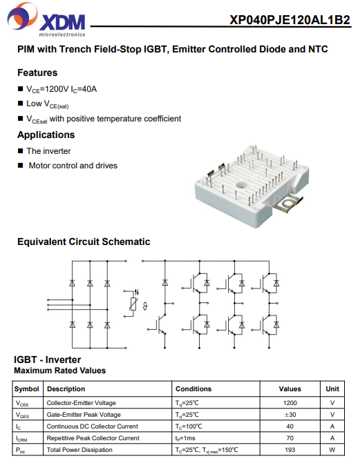 XP040PJE120AL1B2 芯達茂 國產(chǎn)IGBT 功率模塊 40A 1200V