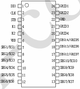 數據傳輸:通過DIO、STB和CLK三條線實現與外部控制器的數據傳輸。DIO線上的數據在STB線的上升沿被鎖存,CLK線提供時鐘信號控制數據的傳輸節奏。